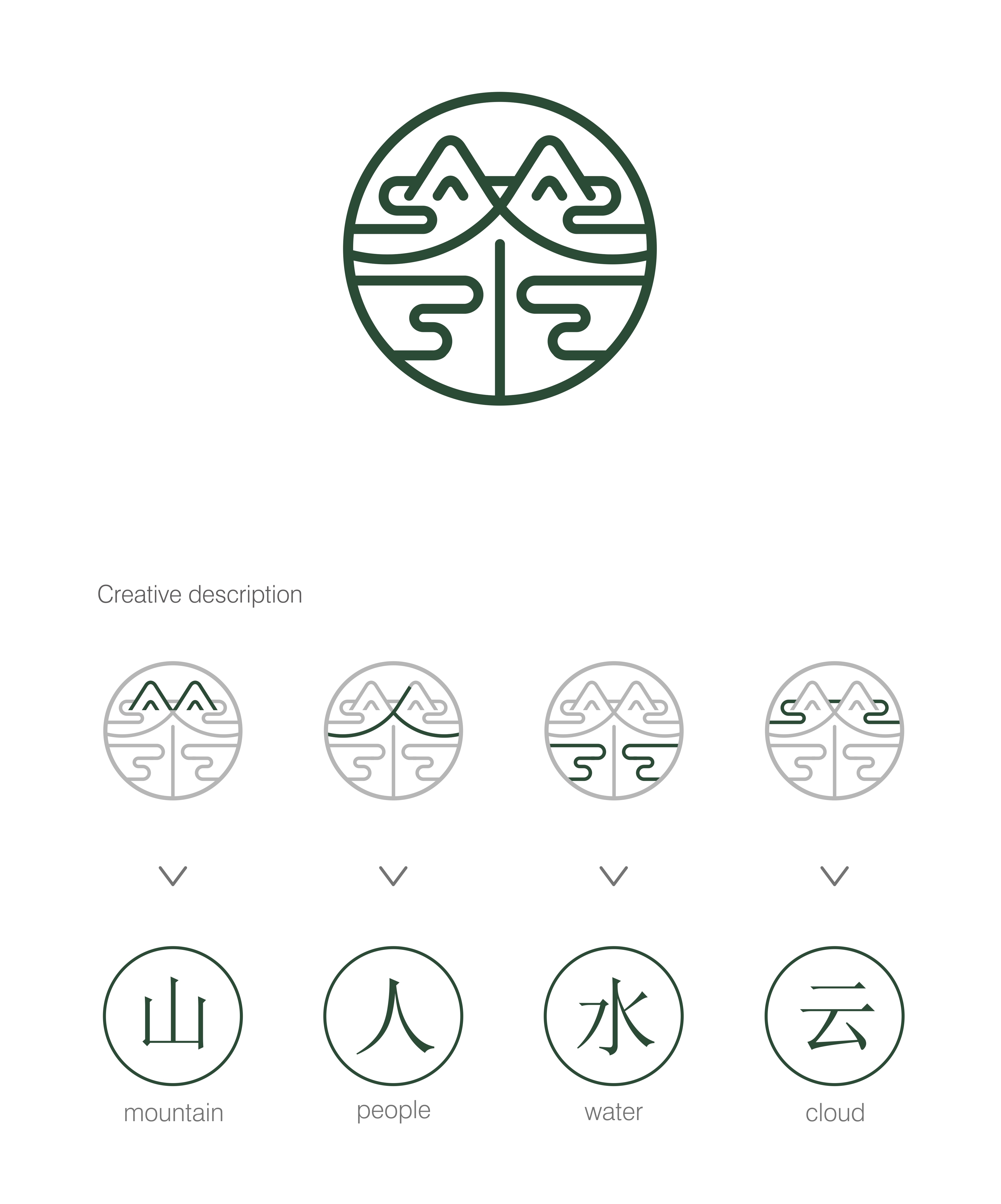 廬山云霧茶(Lu Shan cloud tea),長于“匡廬奇秀甲天下”之稱的廬山,時而淡云飄渺,籠罩山峰;時而云流千米,傾注深谷;蘊云蓄霧,便以云霧作為茶葉之名稱“廬山云霧”,東漢時,廬山僧侶云集,采茶傳禪,話茶吟詩,行云走霧的熏陶讓廬山云霧茶多了一分禪意,從而形成其獨特的醇香品質。我們依據廬山云霧茶的背景文化為設計思路,將logo通過篆體“茶”字結合山、人、水、云等元素進行設計創作,經設計將廬山云霧茶從圖形引申出來,直抒刻畫了茶所生長在流水山下、云卷云舒 的自然意境中;茶香縈繞,通過采茶人的匠心之作將廬山的茶文化傳播于世界各地;加以天方地圓的外輪廓進行點綴,象征著海納萬千,富貴吉祥。“廬山云霧”用書法字體和logo組合相得益彰,且呼吁歷史悠久的茶文化。